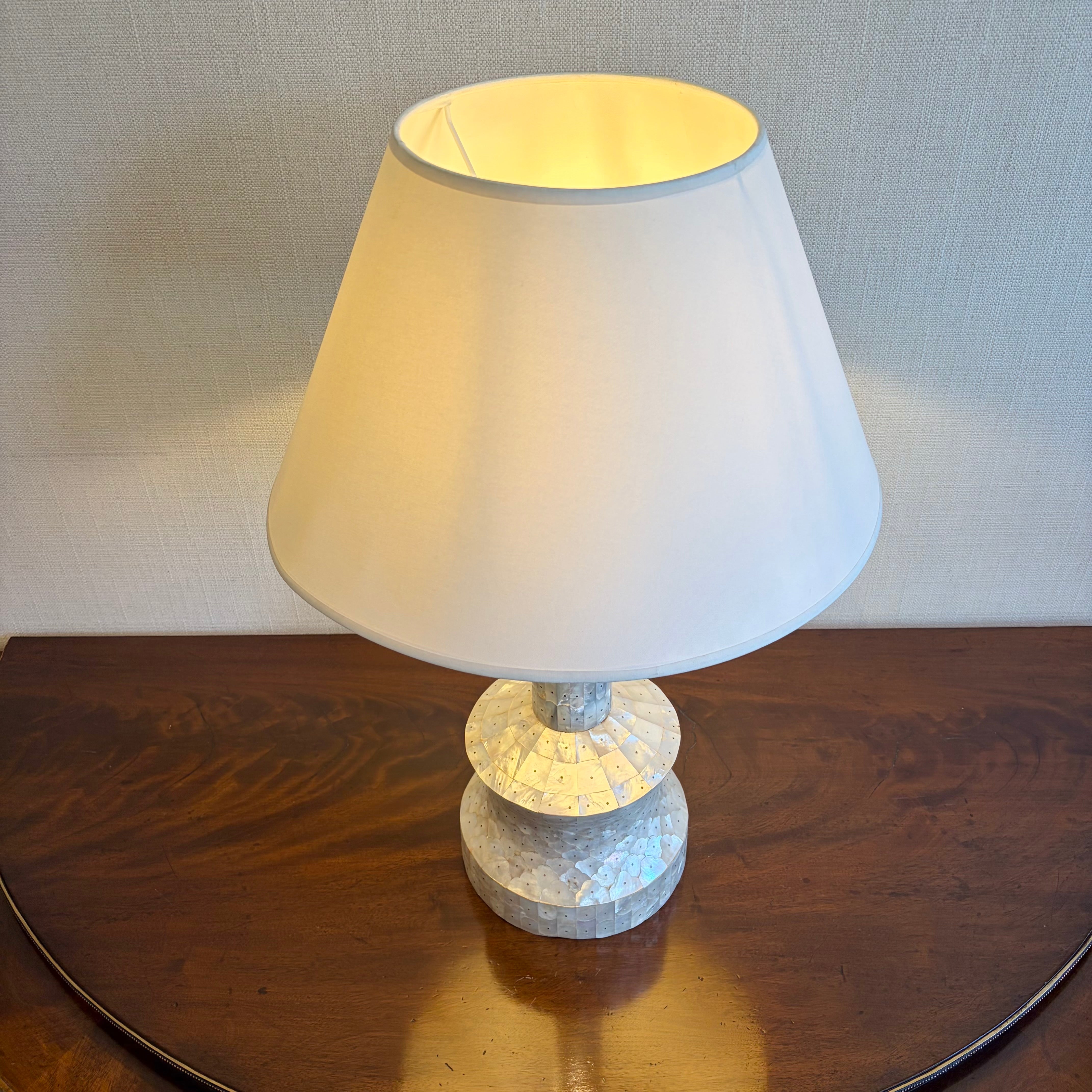 19th century Islamic mother-of-pearl candle holder converted into a table lamp.