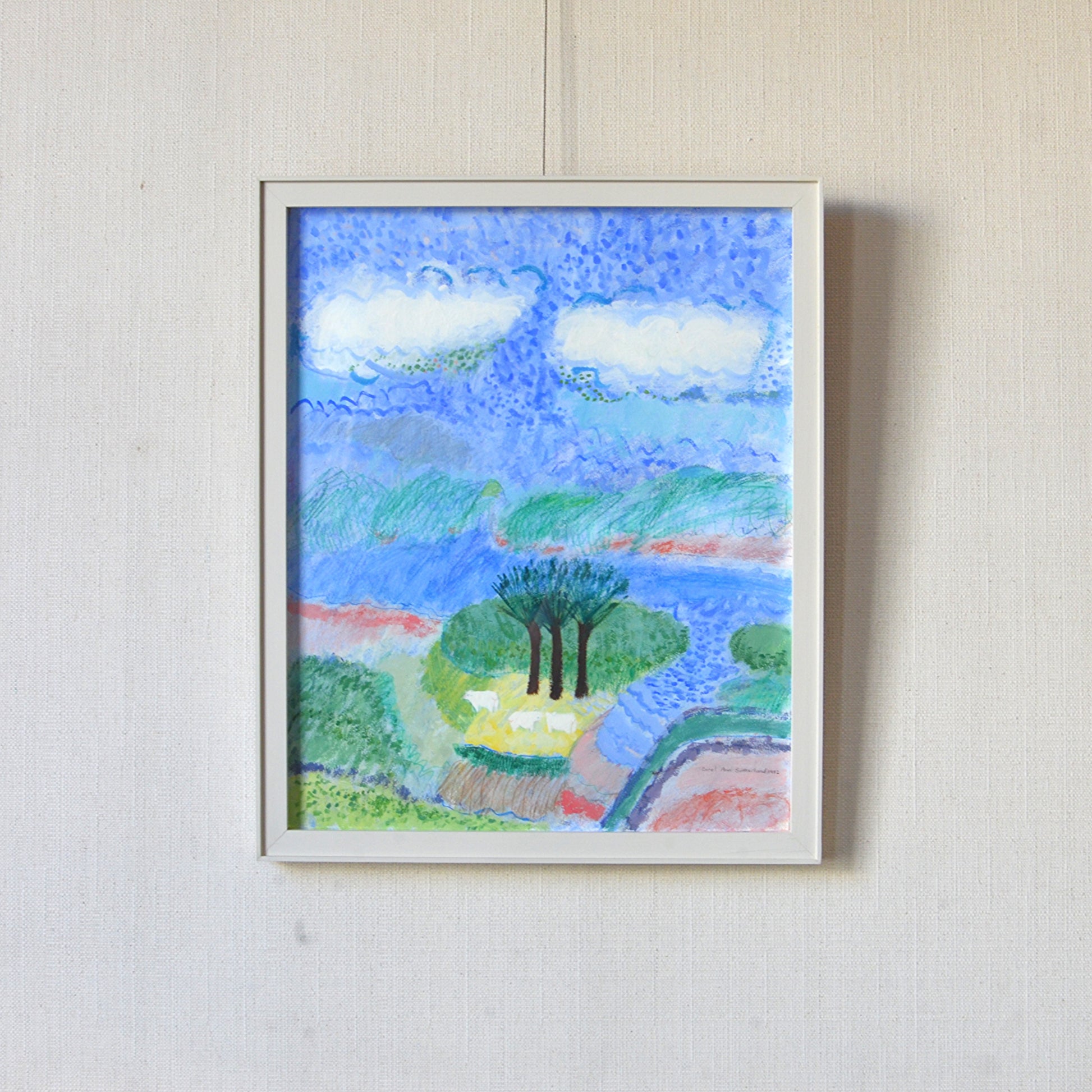 "Landscape with Trees". Signed and dated (lower right). Gouache and pastel.