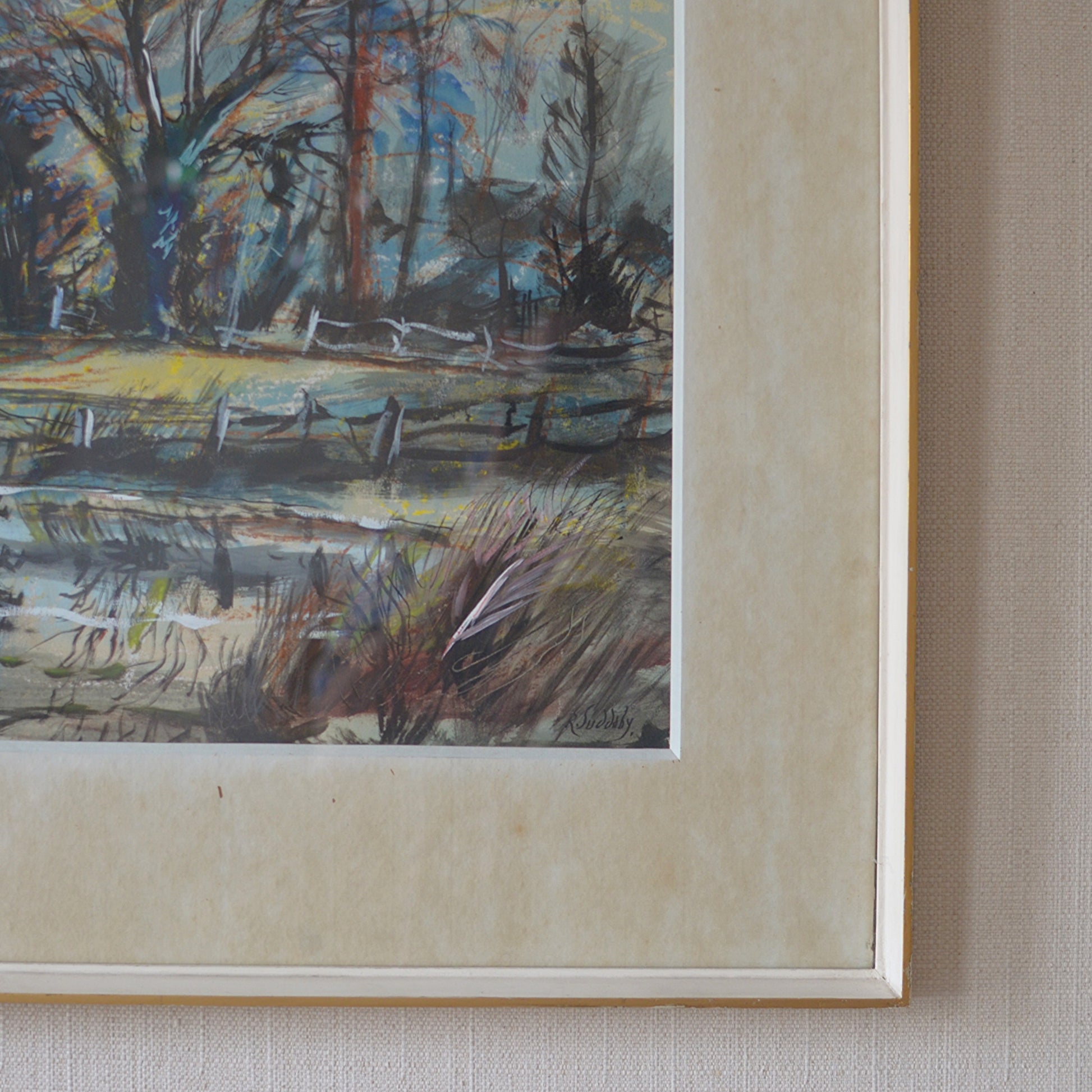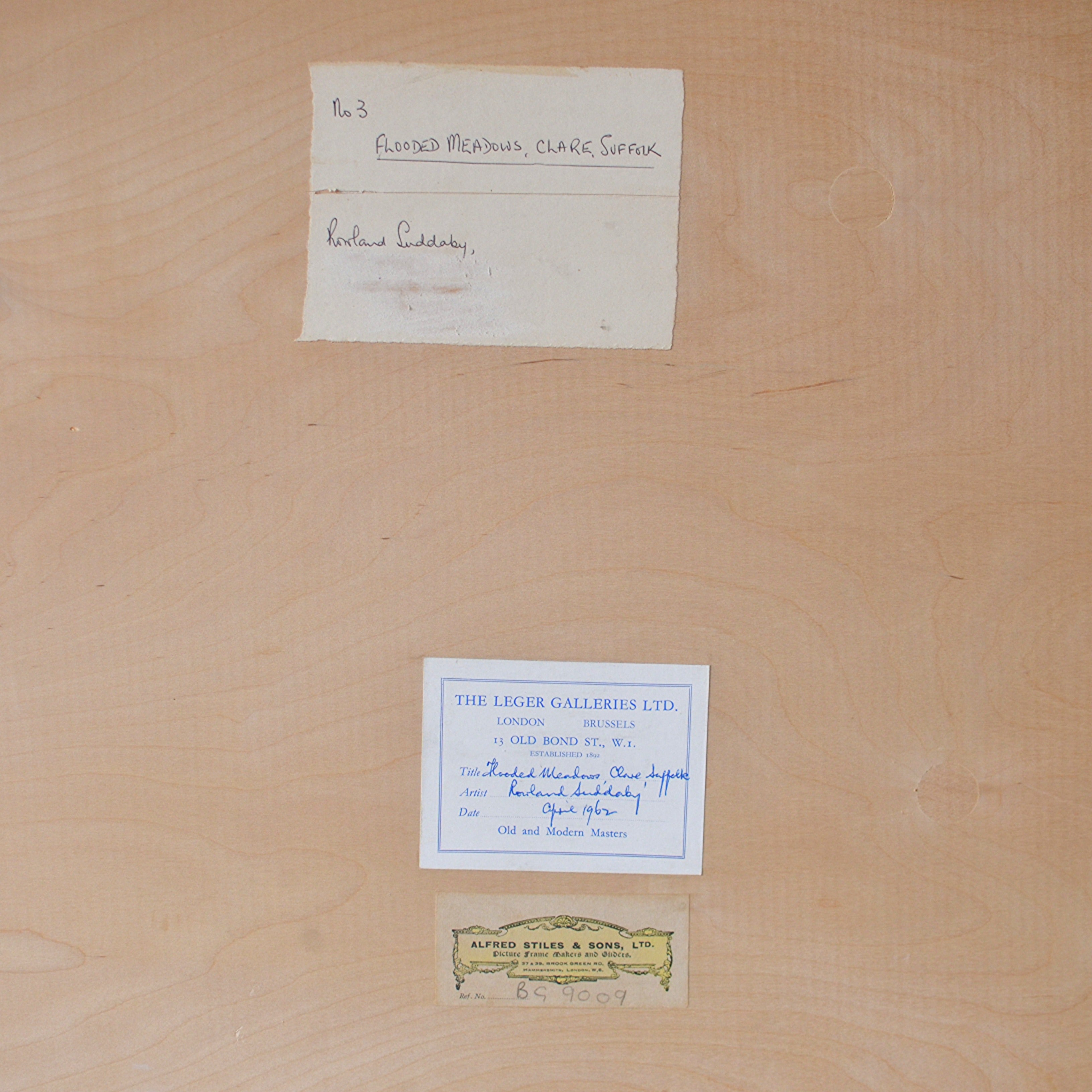 Painter, mainly of landscapes. Born in Kimberworth, Yorkshire, Suddaby studied at Sheffield College of Art from 1926, winning a scholarship there. In 1931 he married and moved to London with few prospects, but spent two years designing for films in Wardour Street before starting to paint full-time. After World War II exhibited solo with Leger Galleries, more recent exhibitions including Austin/Desmond Fine Art. Eventually Suddaby settled at Great Cornard, Sudbury, Suffolk, and became associated with scenes of East Anglia. He illustrated the covers of books by the Essex Marshland writer S L Bensusan and was a founder of the Colchester Art Society, with Edward Bawden, John Nash and Cedric Morris among the exhibitors.