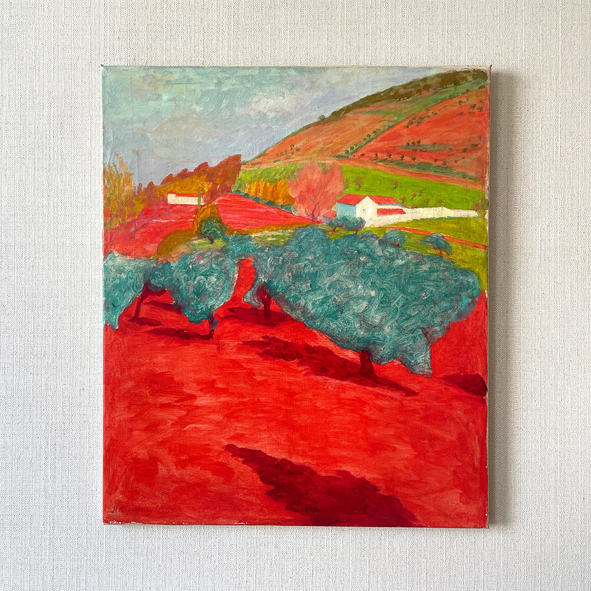 "Spanish Landscape". British artist, oil on canvas, signed bottom left.