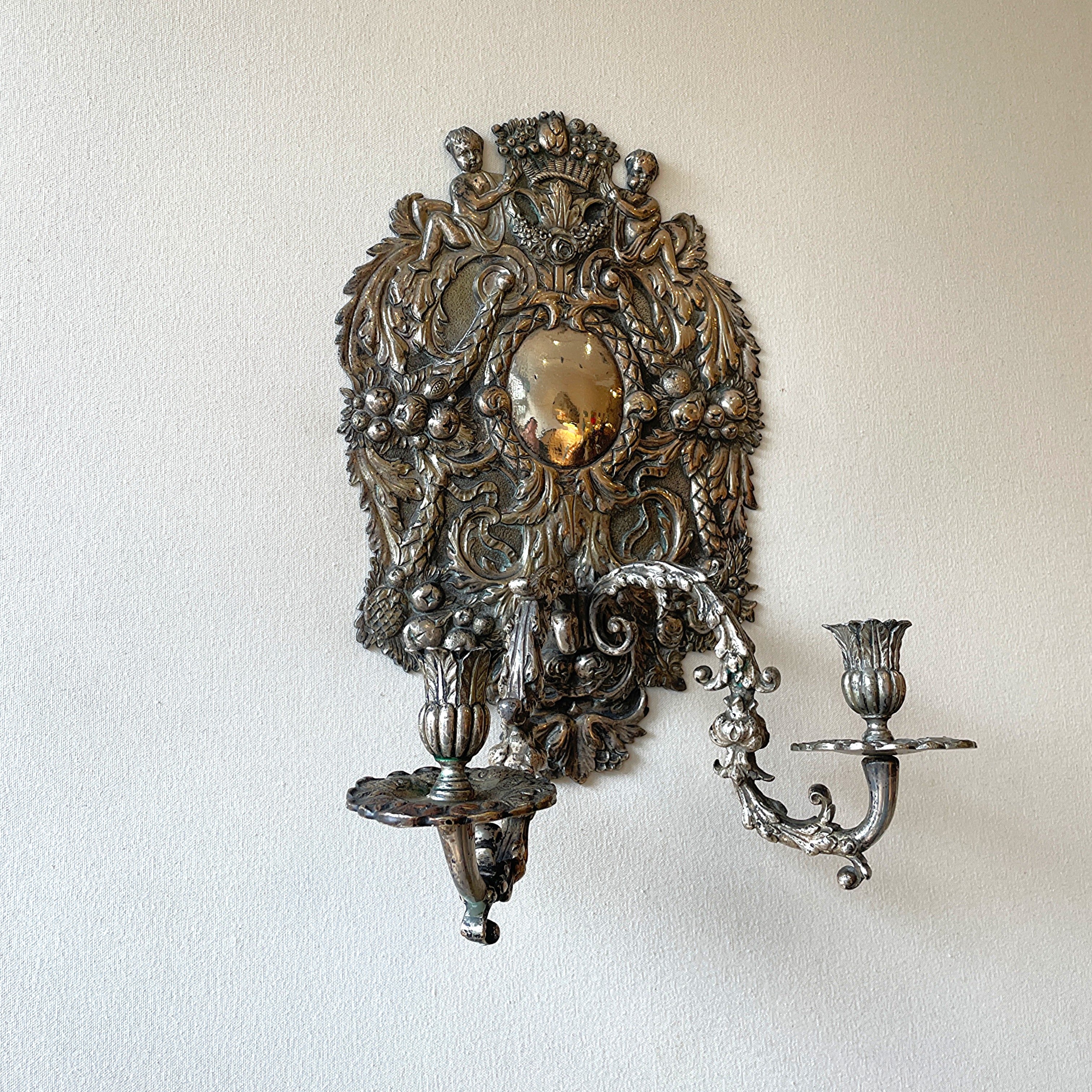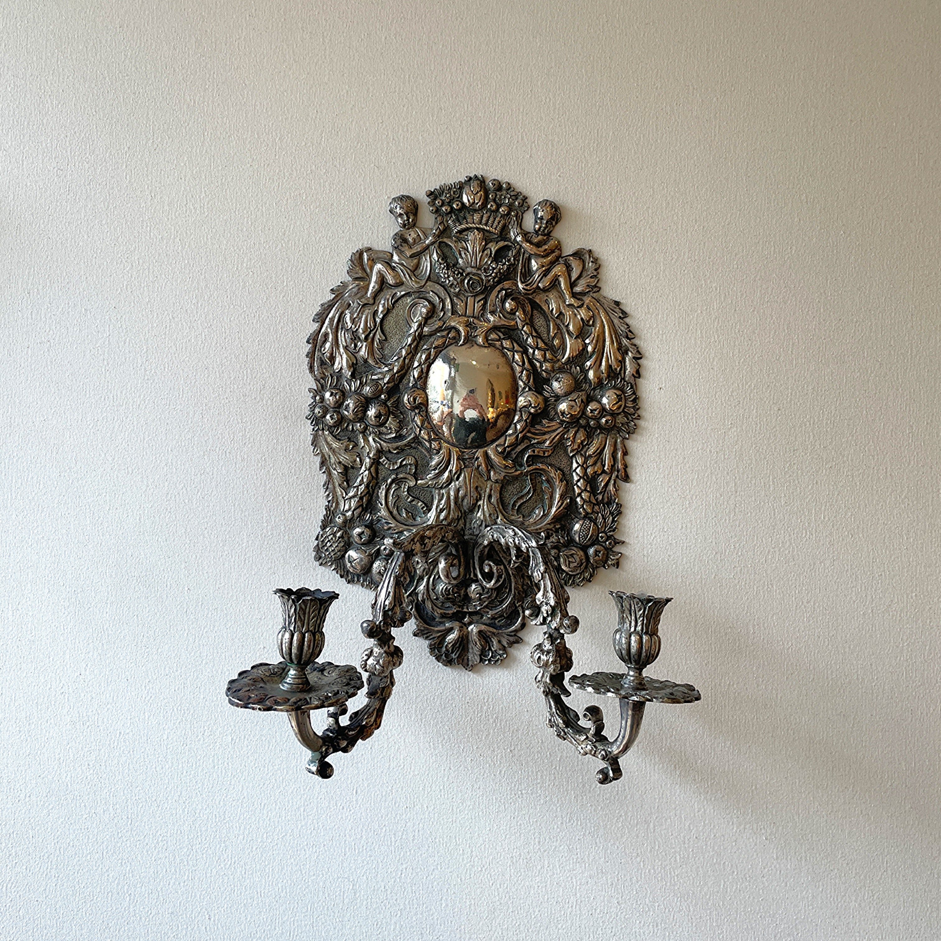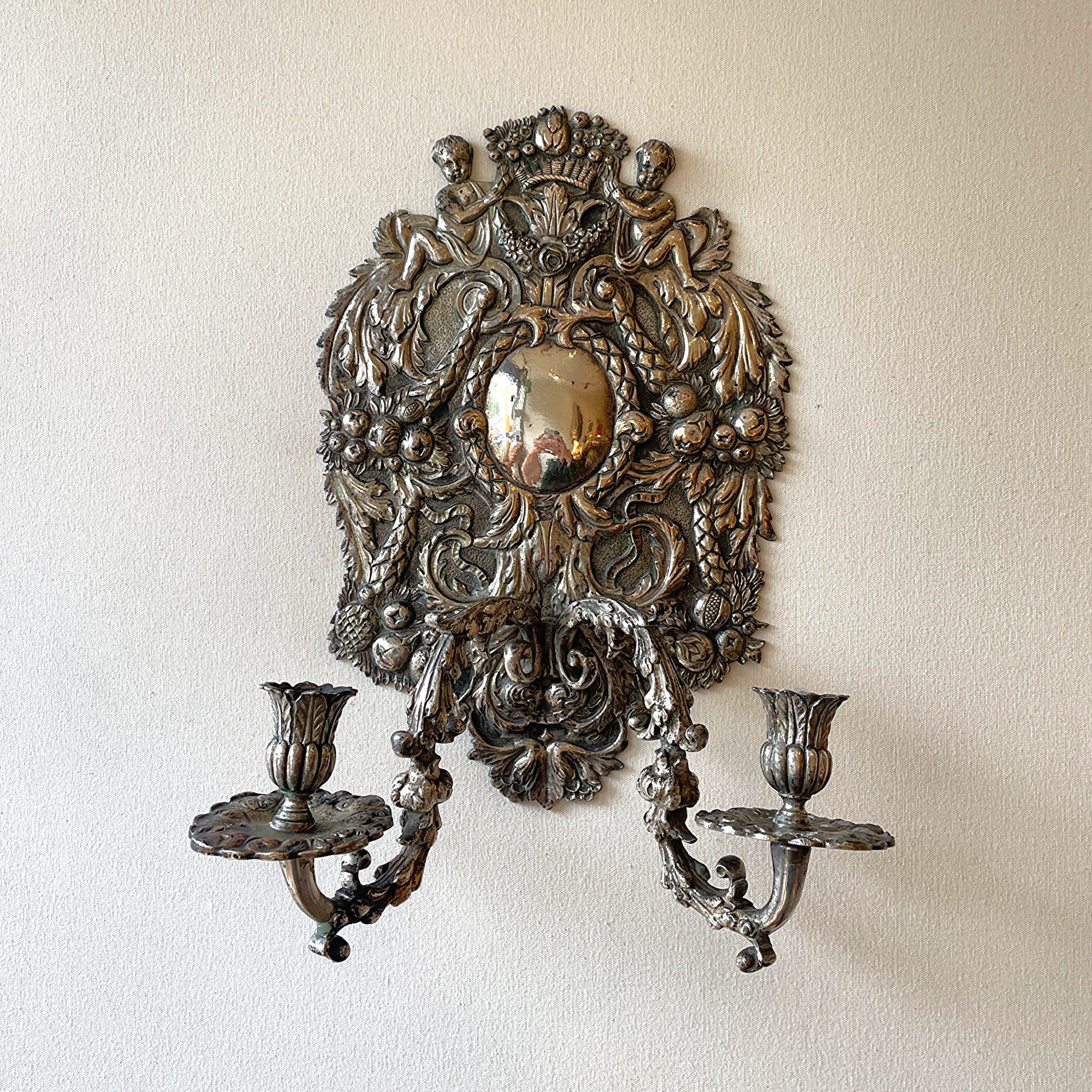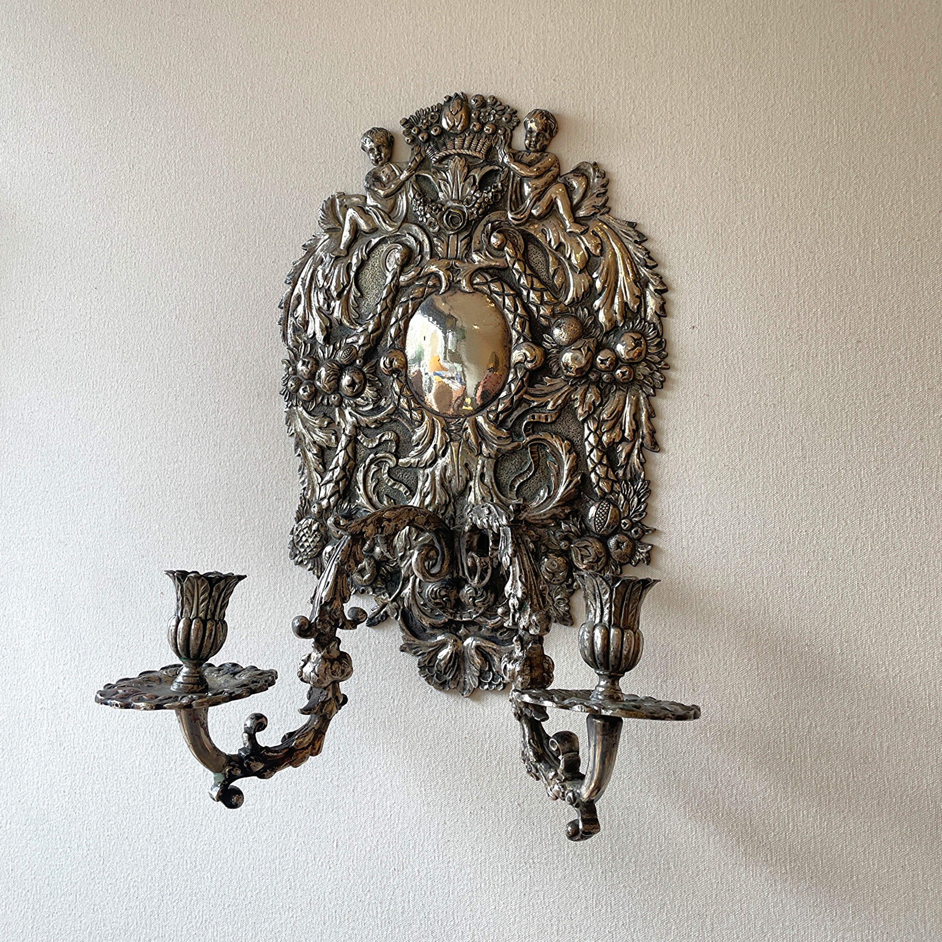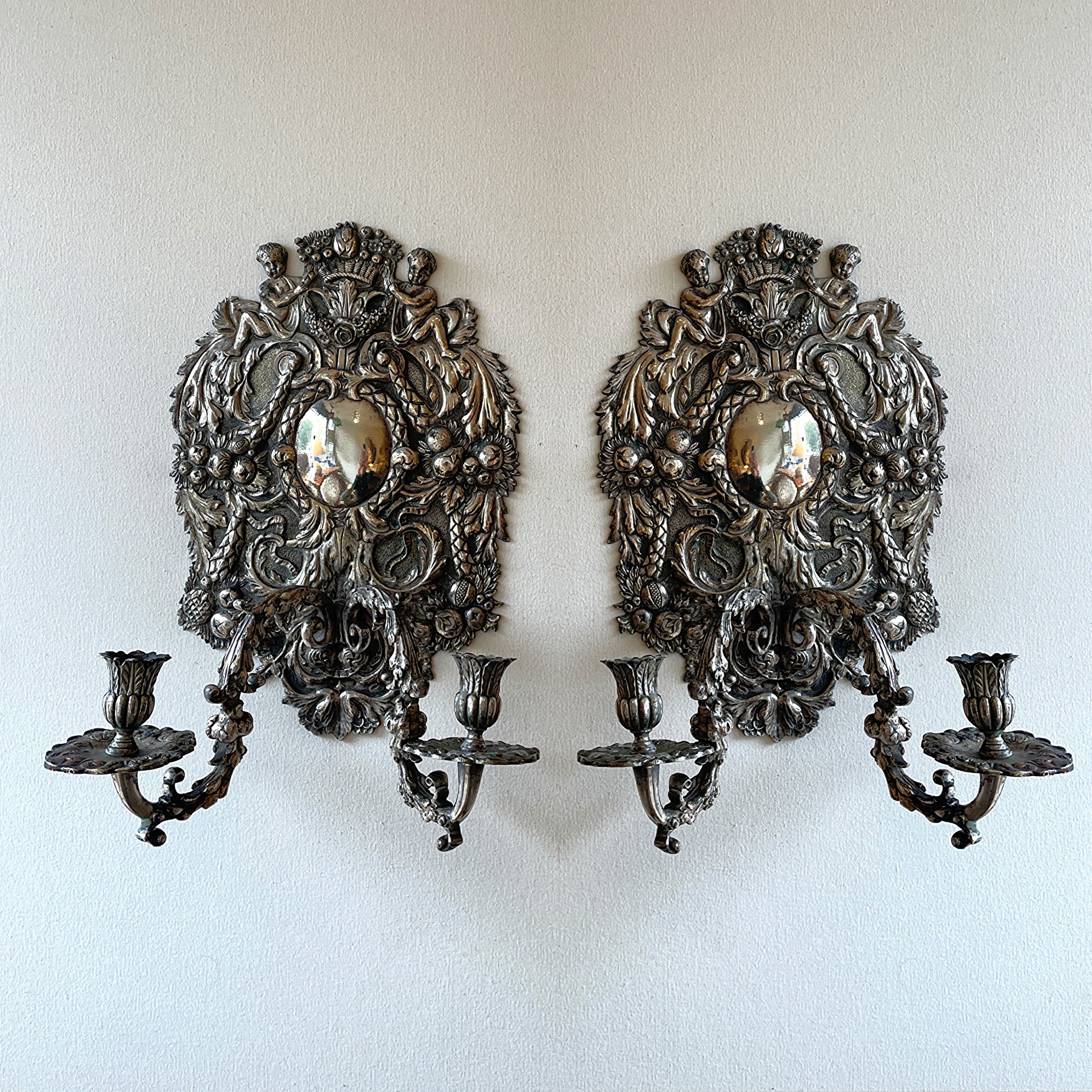 Pair of Large Silver Metal Wall Lights