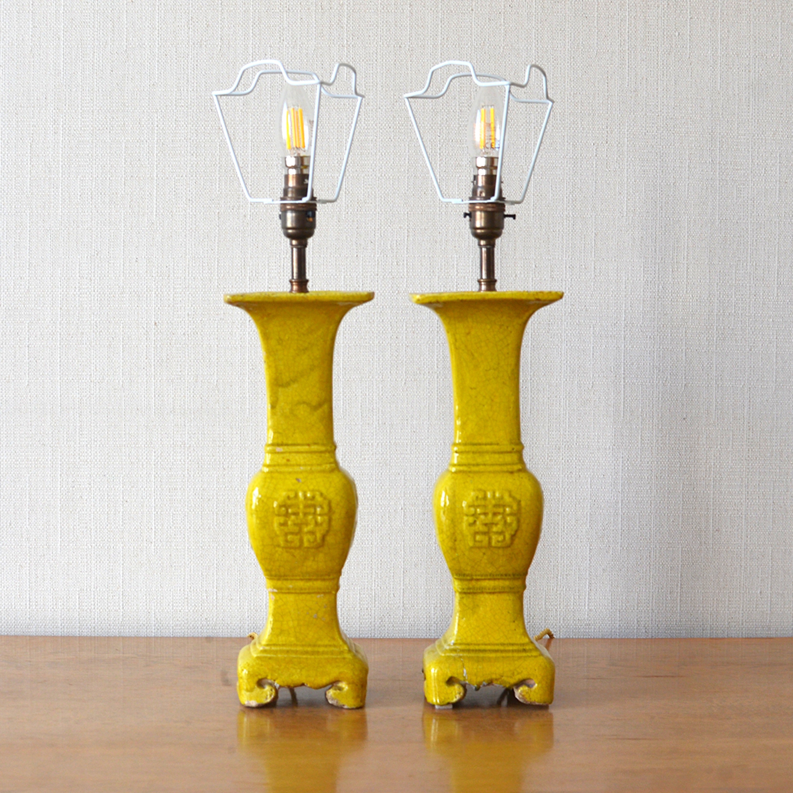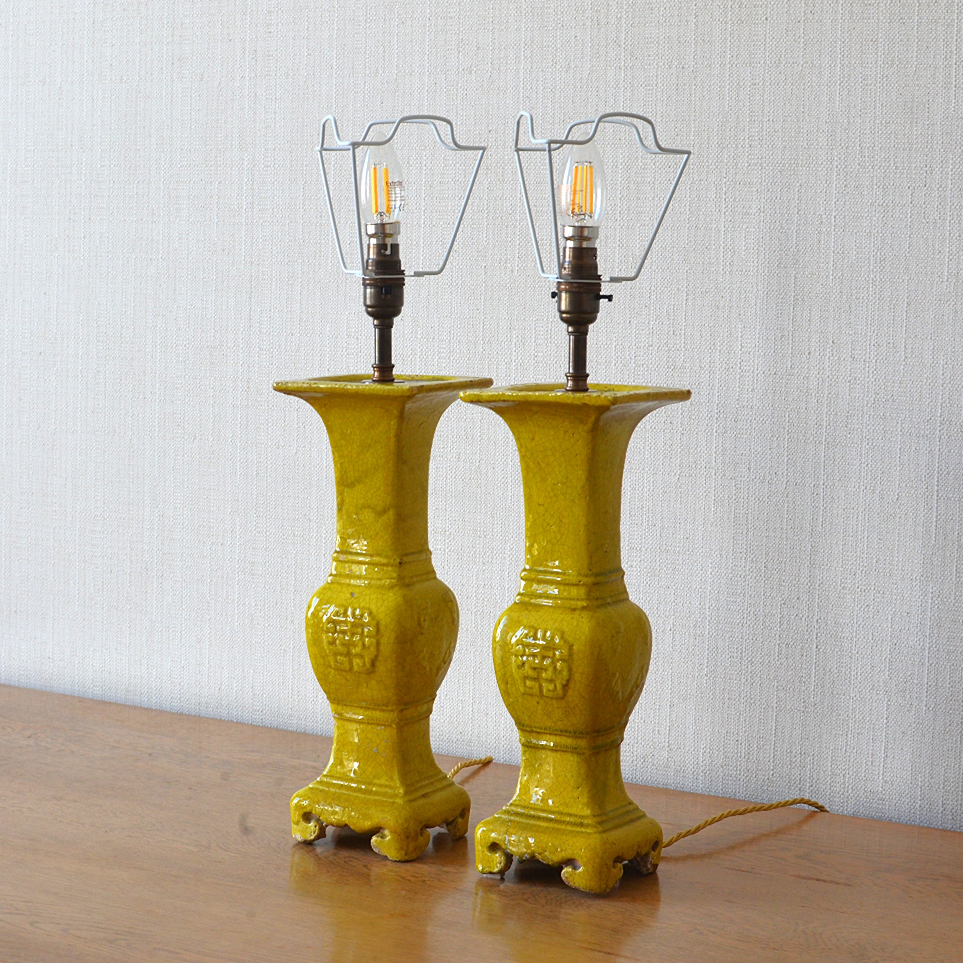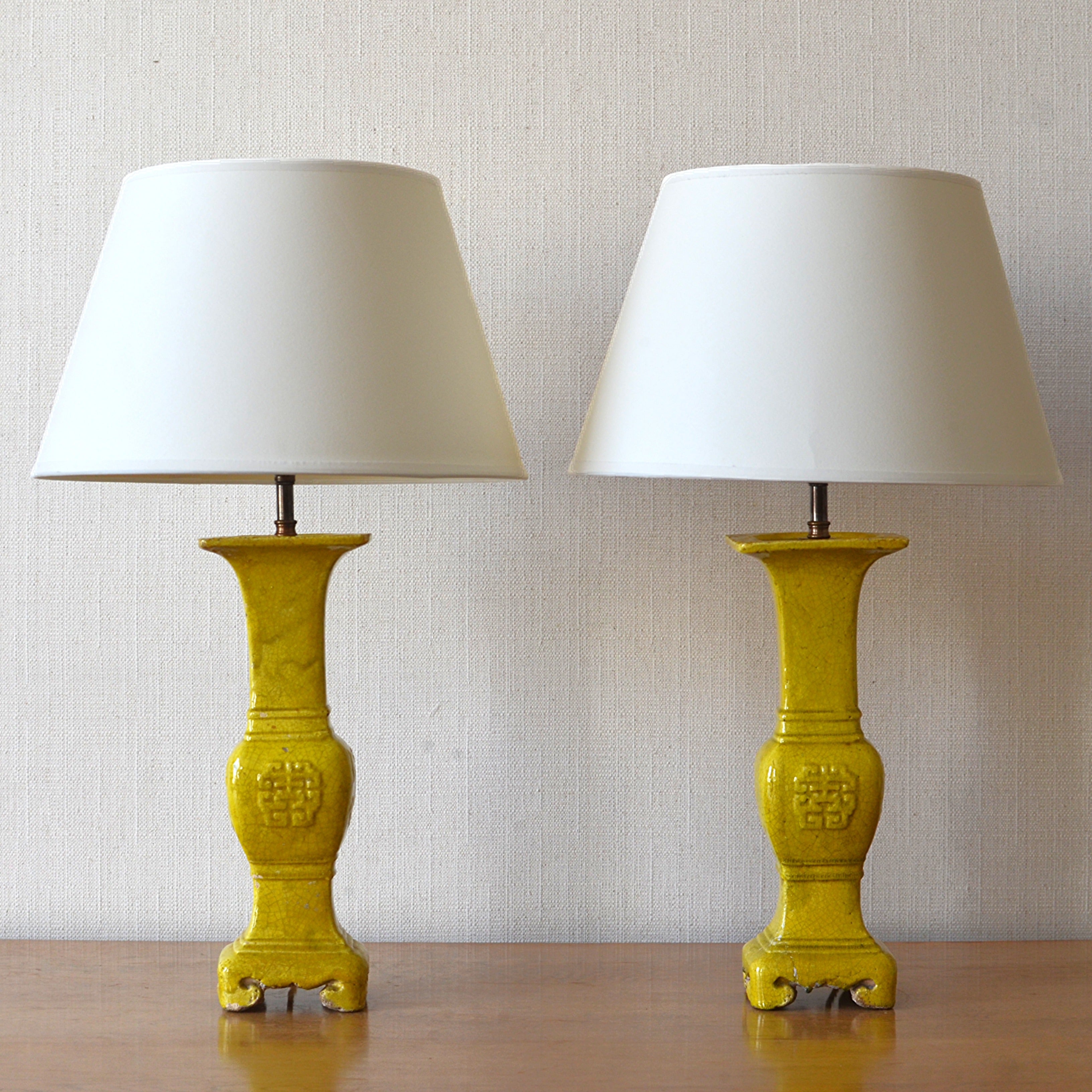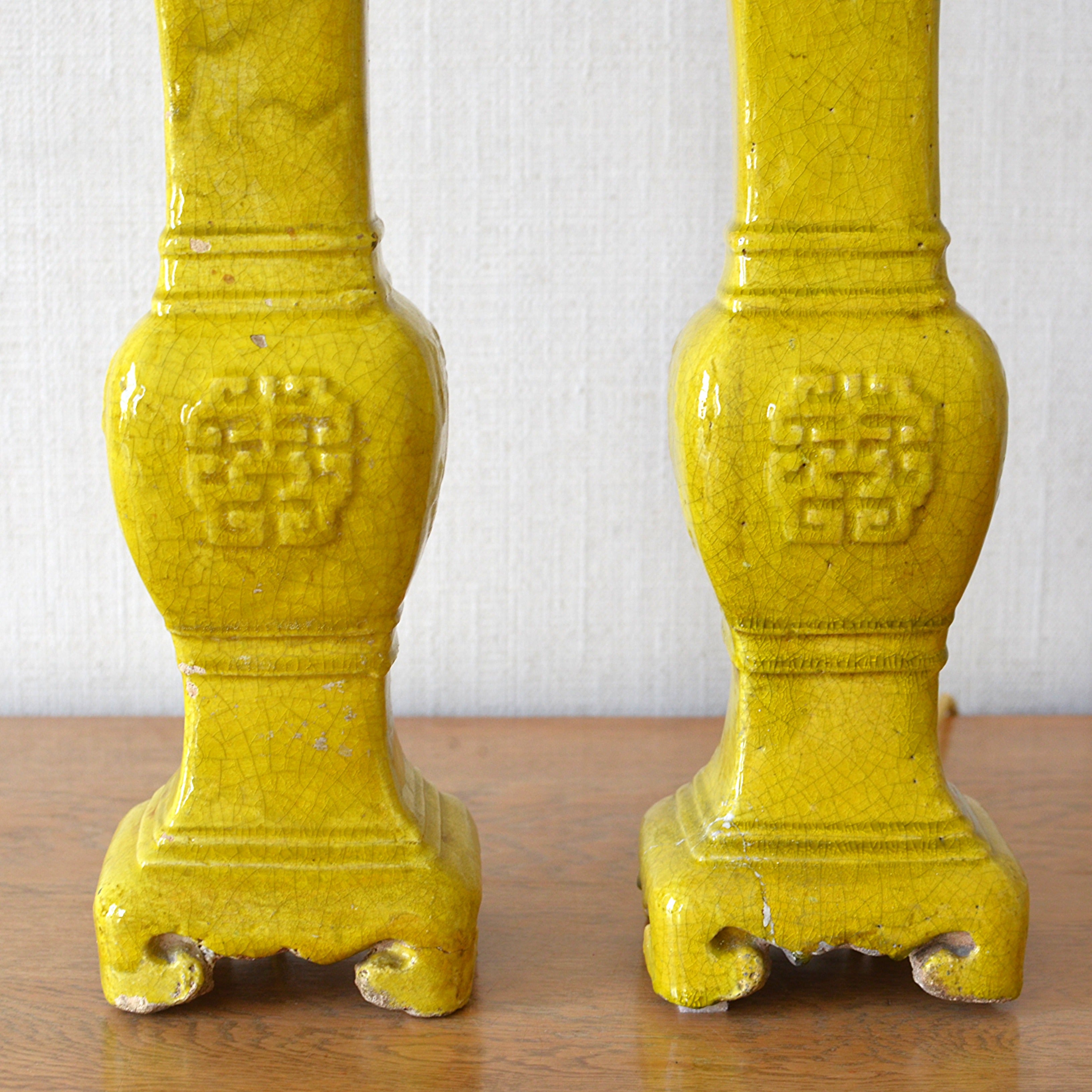 Pair of Yellow Glazed Table Lamps