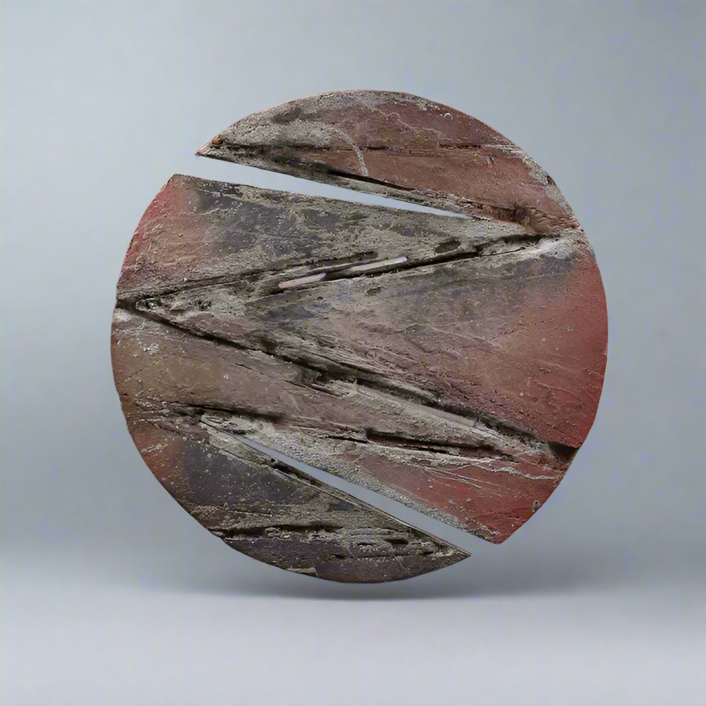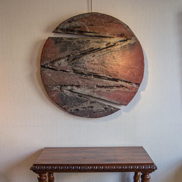 Board with paint, soil and burnt glaze.
