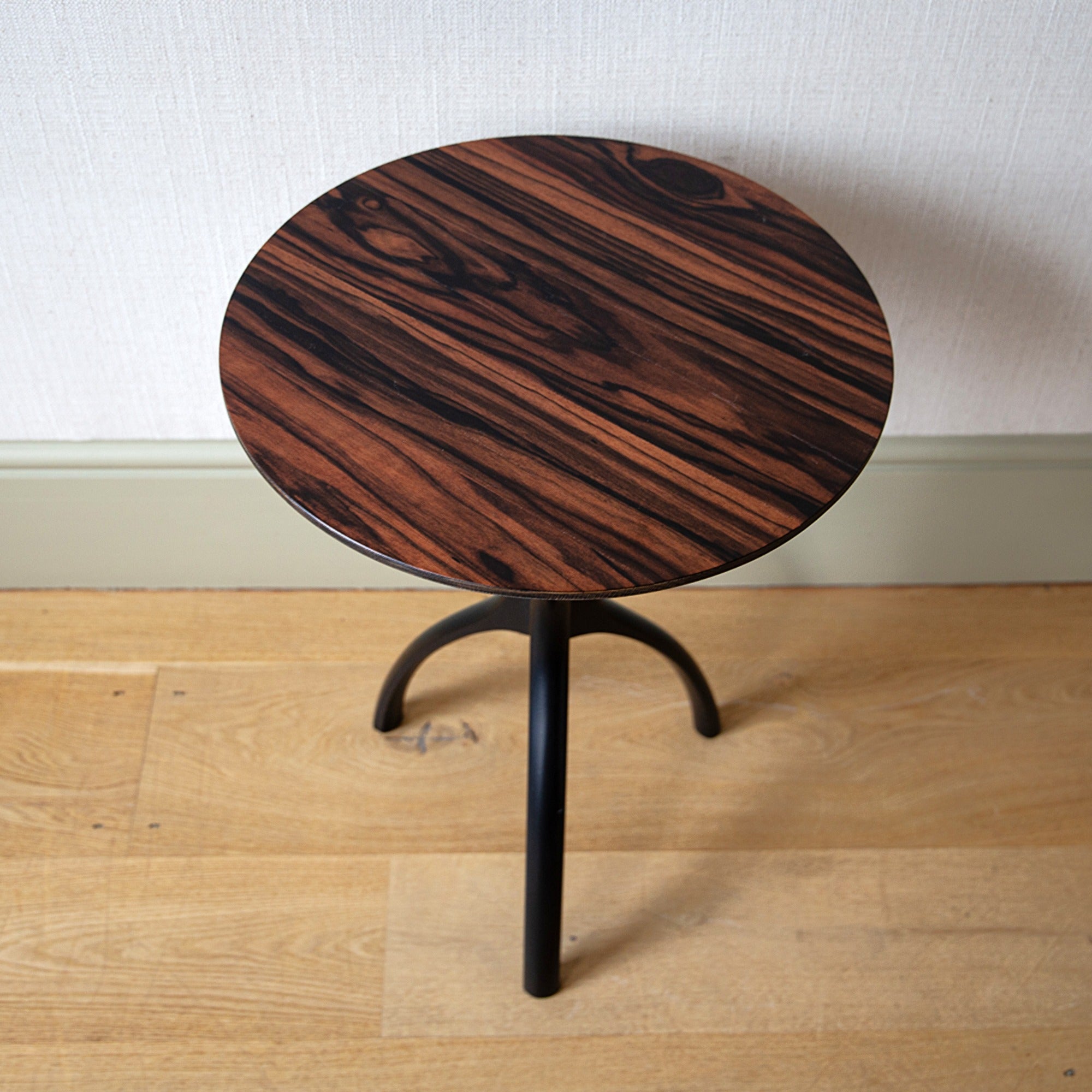 These side-tables, designed by James McWhirter, are available in a variety of finishes (shown here are natural oak, burr oak and ebonised calamander) and can also be painted in a colour of choice.